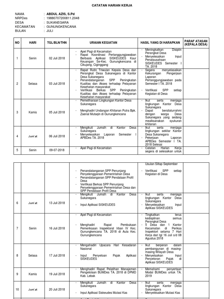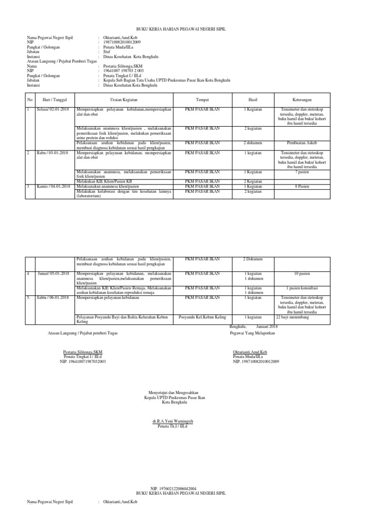 Laporan harian laporan kerja harian pns nama. Untuk Anda yang tengah mencari. Inilah contoh buku catatan kerja harian di puskesmas dan hal lain yang berhubungan erat dengan contoh buku catatan kerja harian di puskesmas serta aspek K3 secara umum di Indonesia.