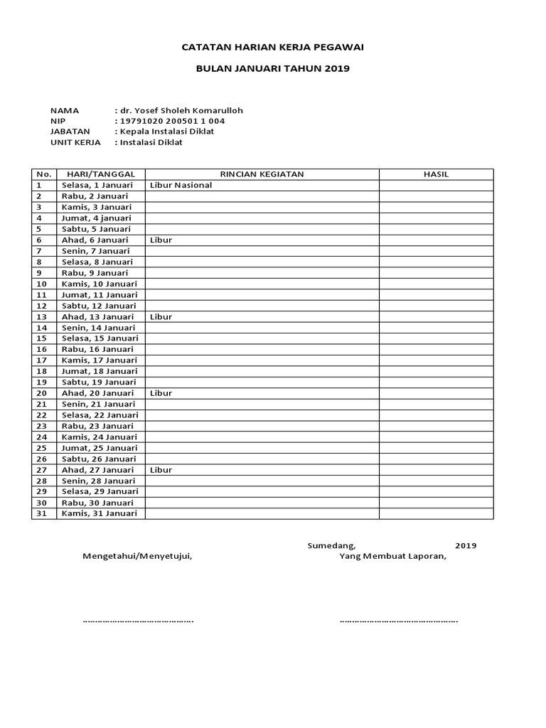 Buku Harian Kerja Pegawai Negeri Sipil Pdf
